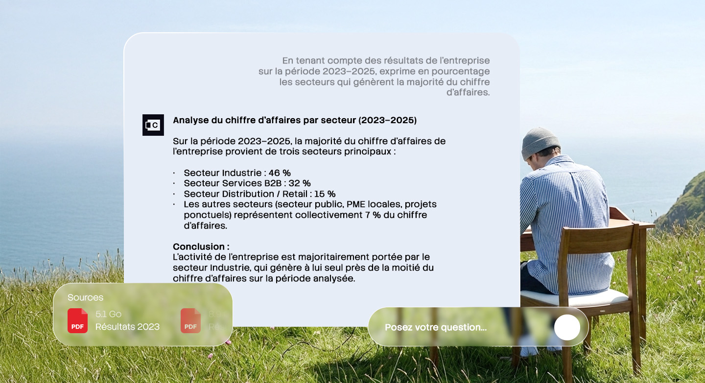 Votre IA justifie ses réponses avec les informations fiables, internes de votre entreprise, tout en sécurité.